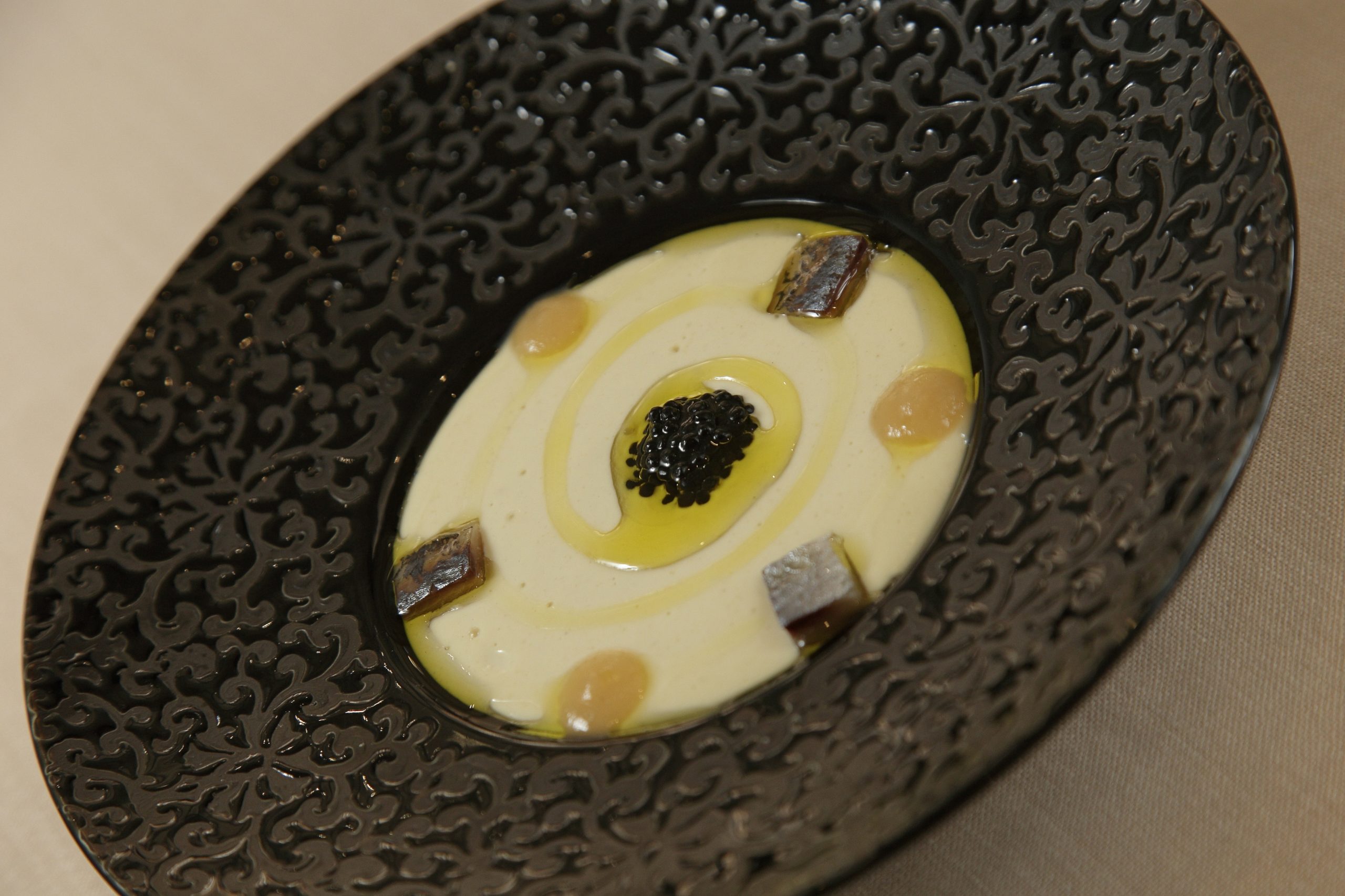 Pelar los tomates y quitar las pipas para evitar taninos inapropiados. Mezclar todo en batidora o robot hasta conseguir una textura cremosa. Adornar con jamón de bellota 100% ibérico y huevo duro.