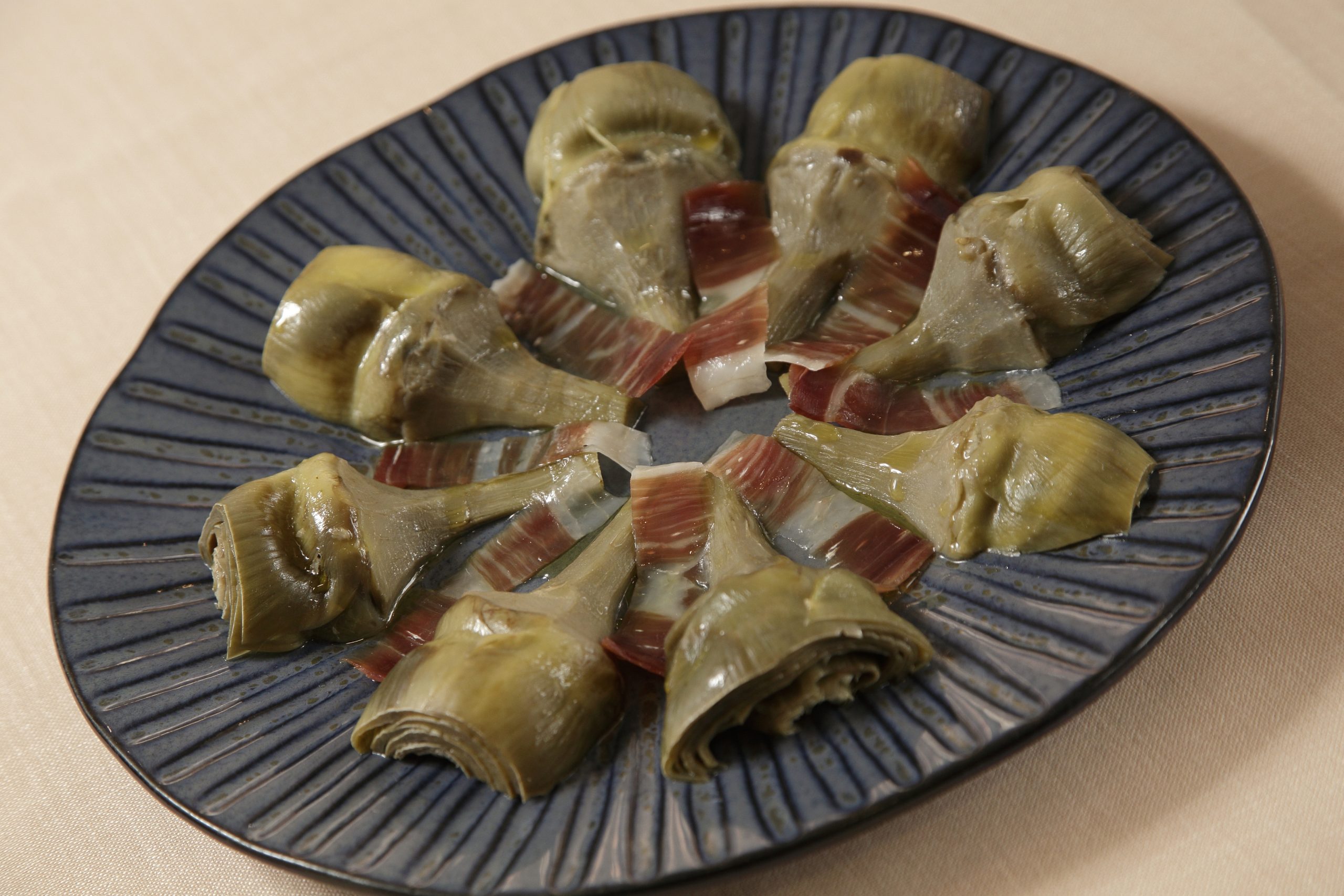 La joya de la corona de la mayor dehesa del mundo: Los Pedroches Jamones obtenidos de cerdos de raza ibérica pura, criados en libertad y alimentados durante su engorde de todo aquello que la enorme dehesa les da. Fundamentalmente bellota, que consigue una metabolización única que da lugar a el famoso entreverado de su carne. Curado en sal al modo ancestral, y reposado en secaderos durante al menos 4 años. Silencio y aire puro. Una de las 4 grandes obras maestras de la gastronomía mundial junto con la trufa blanca, el caviar y el foie. Cortado a cuchillo en finas lonchas por los maestros cortadores, su grasa veteada se funde al contacto con la boca. Un prodigio para el paladar.